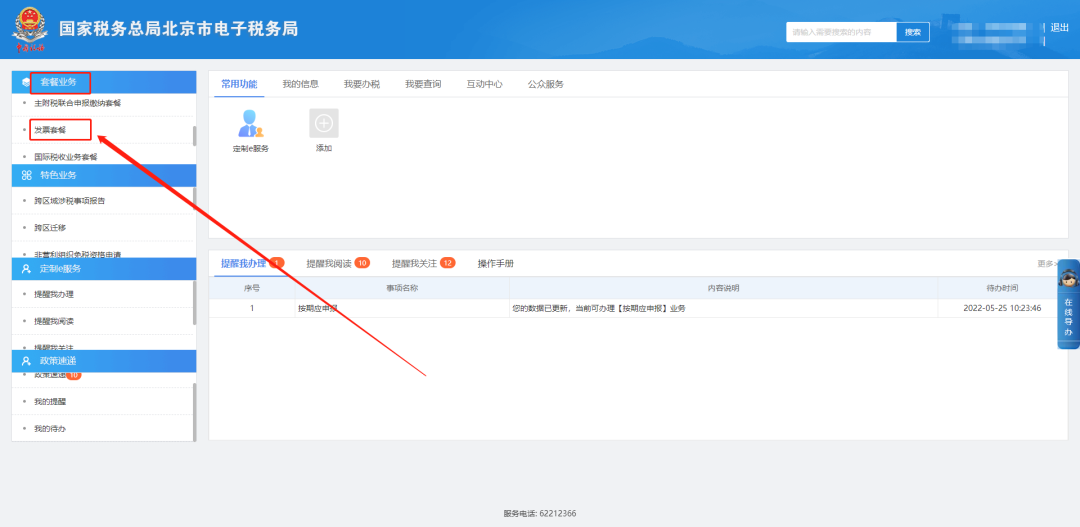 一、套餐业务—发票套餐。