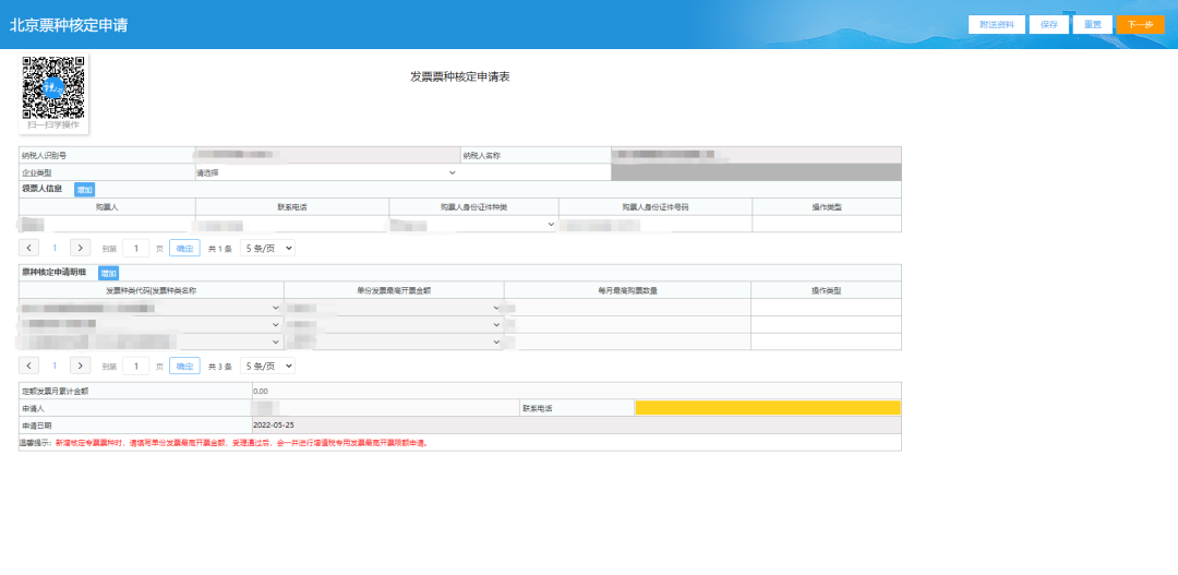 三、发票票种核定申请表页面。