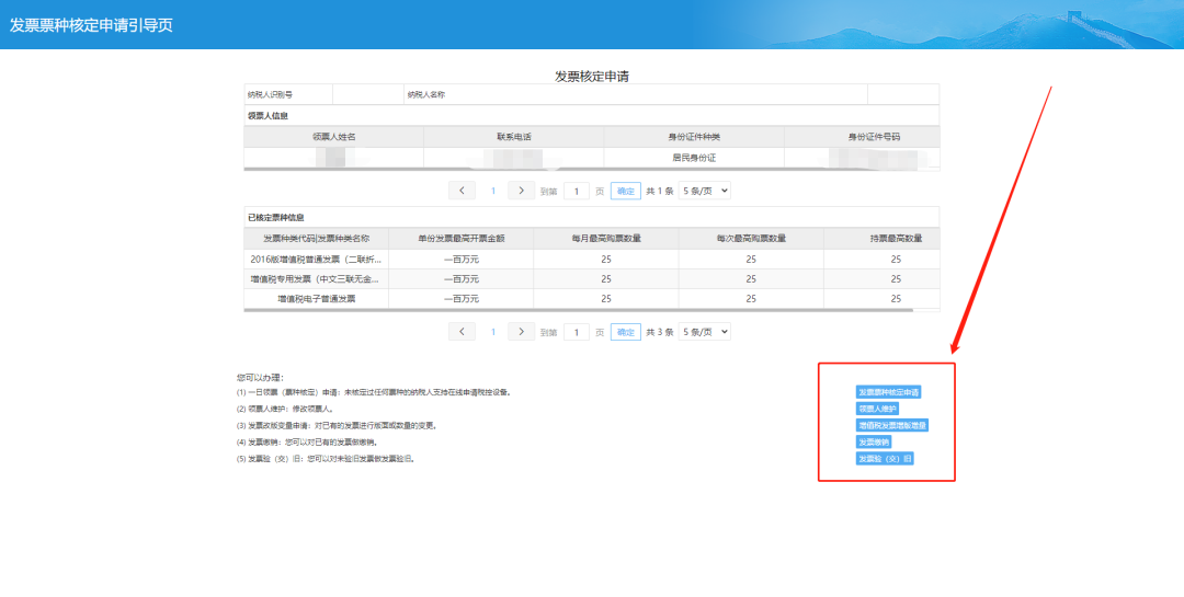 进行发票票种核定申请、领票人维护、增值税发票改版变量、票e送的一站式套餐办理。
