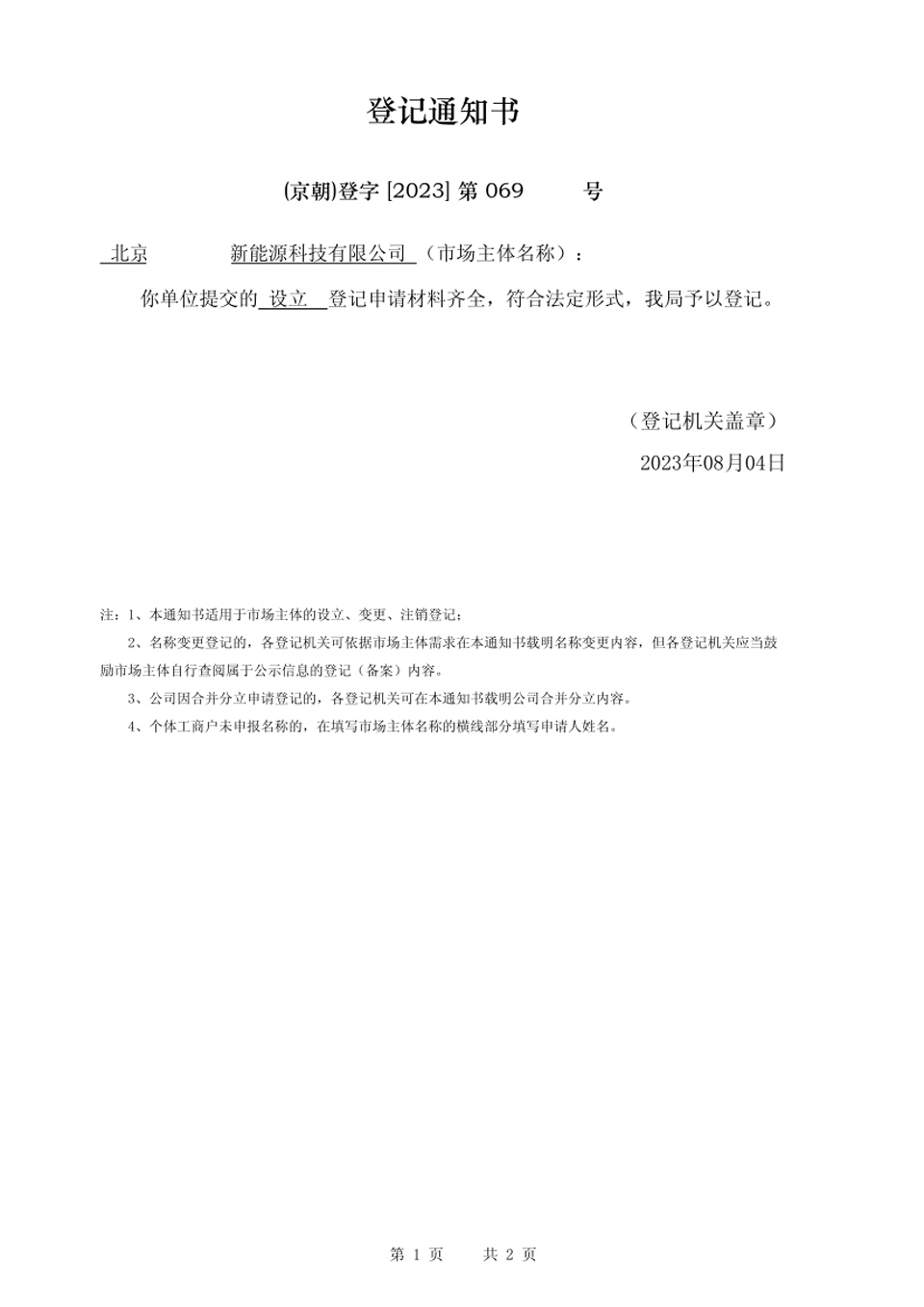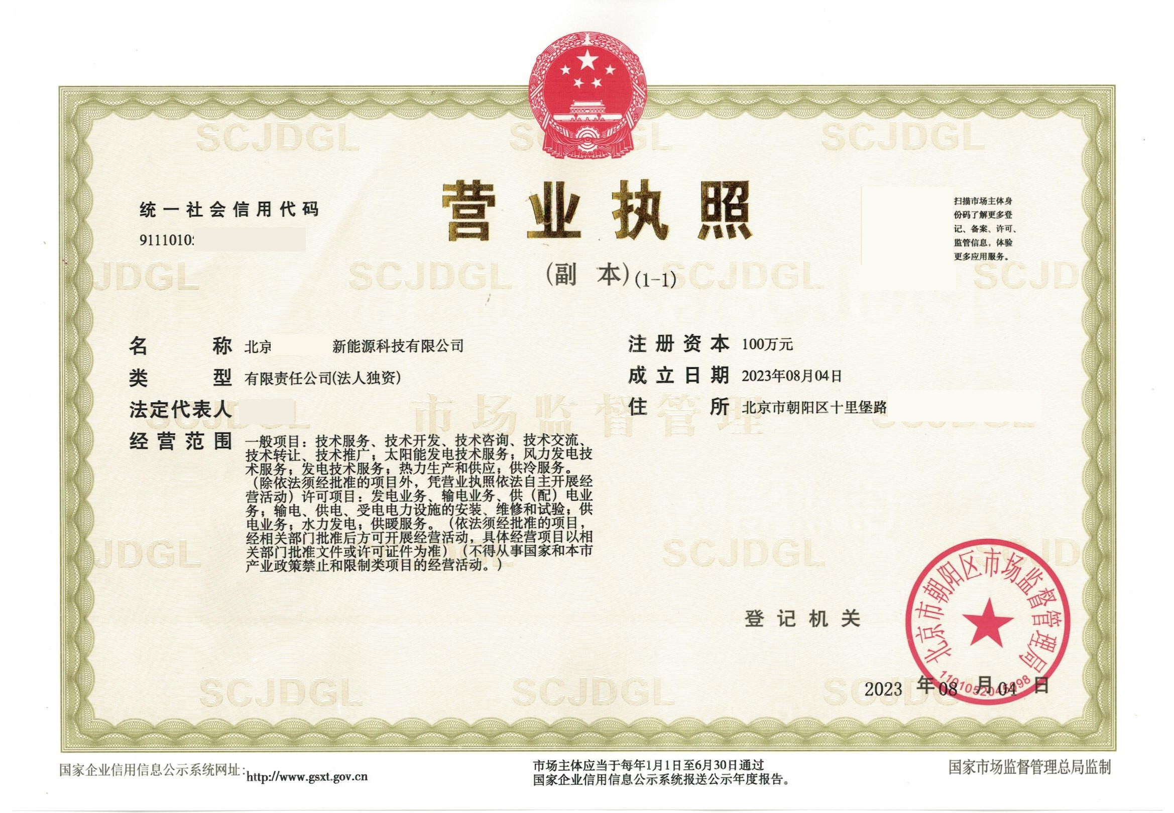 注册朝阳区新能源科技公司
