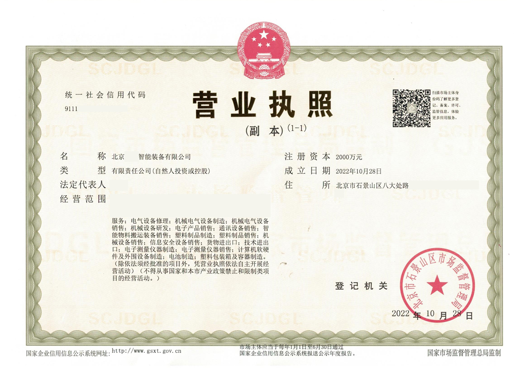 本次受客户委托代办公司注册手续,客户自己有注册地址,在石景山区,注册资金2000万,客户主要做智能装备的研发、销售。久华接受委托之后先给客户核准名称,然后帮助客户和注册地址物业方联系,让物业提供符合工商局要求的注册地址材料,同时指导客户提前准备注册公司需要的资料,让股东和法人等高管人员提前做工商实名认证。材料准备齐全之后代客户提交工商注册申请,顺利取得营业执照和公章全套资料。取得营业执照之后帮客户联系银行开立基本账户,以及办理后期税务登记、社保登记、公积金开户等事宜。