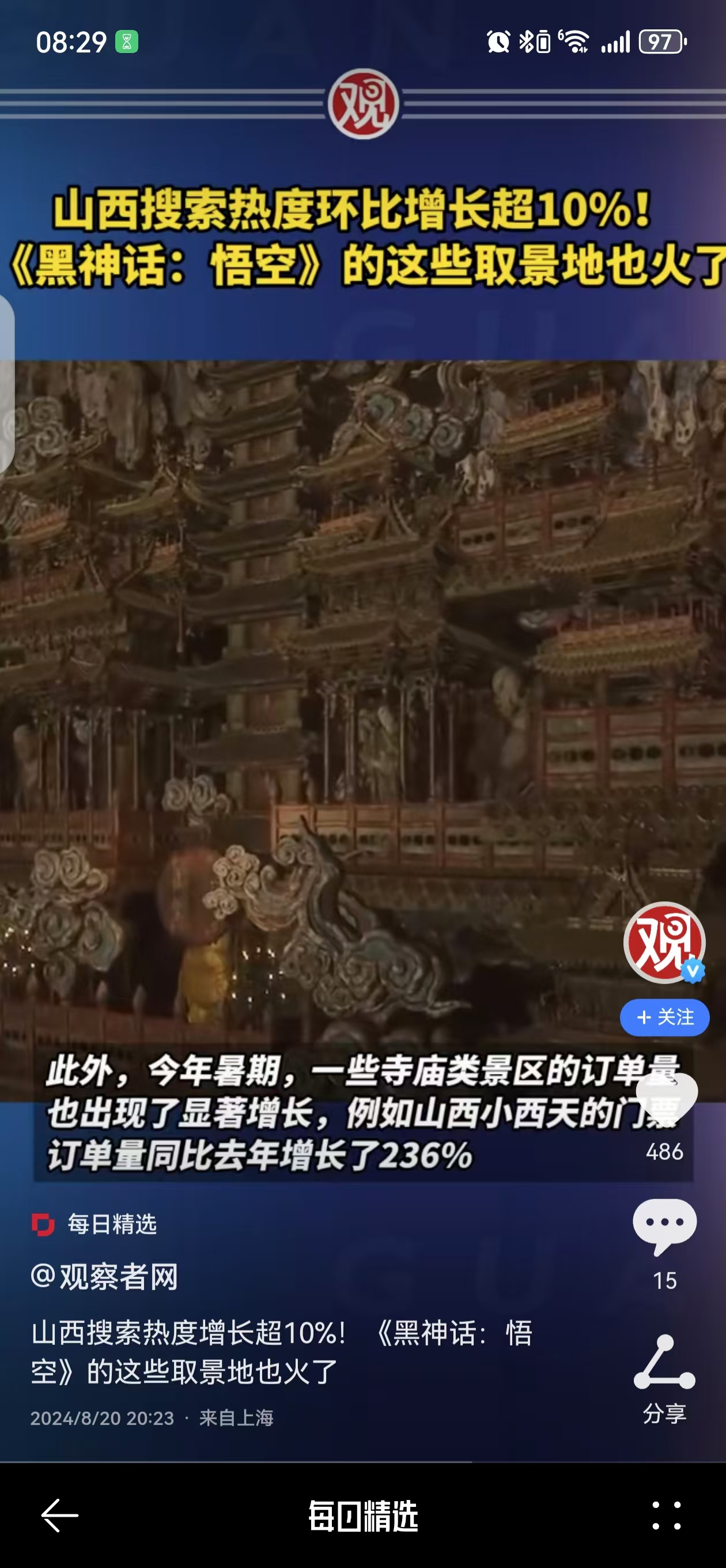 《黑神话:悟空》全球大火,让很多人对游戏里的场景产生了兴趣,可以预见,会有很多人前去打卡留念。不仅仅局限于国内,甚至会吸引很多海外的游客。